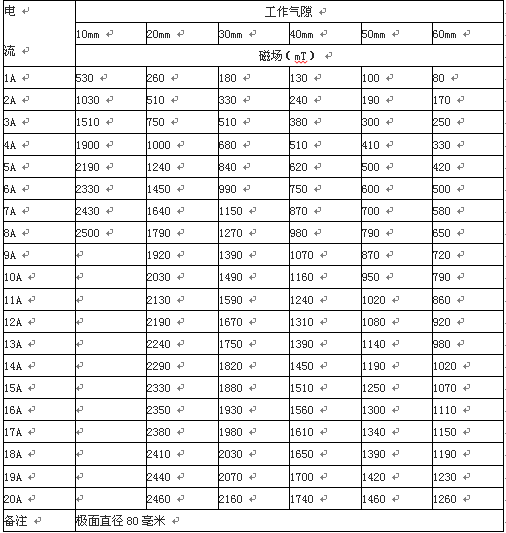 5、磁場參數(shù)表:(供參考)
